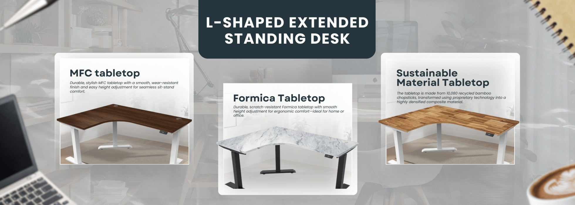 [Customizable] L-Shaped Extended Standing Desk, Sustainable Material
