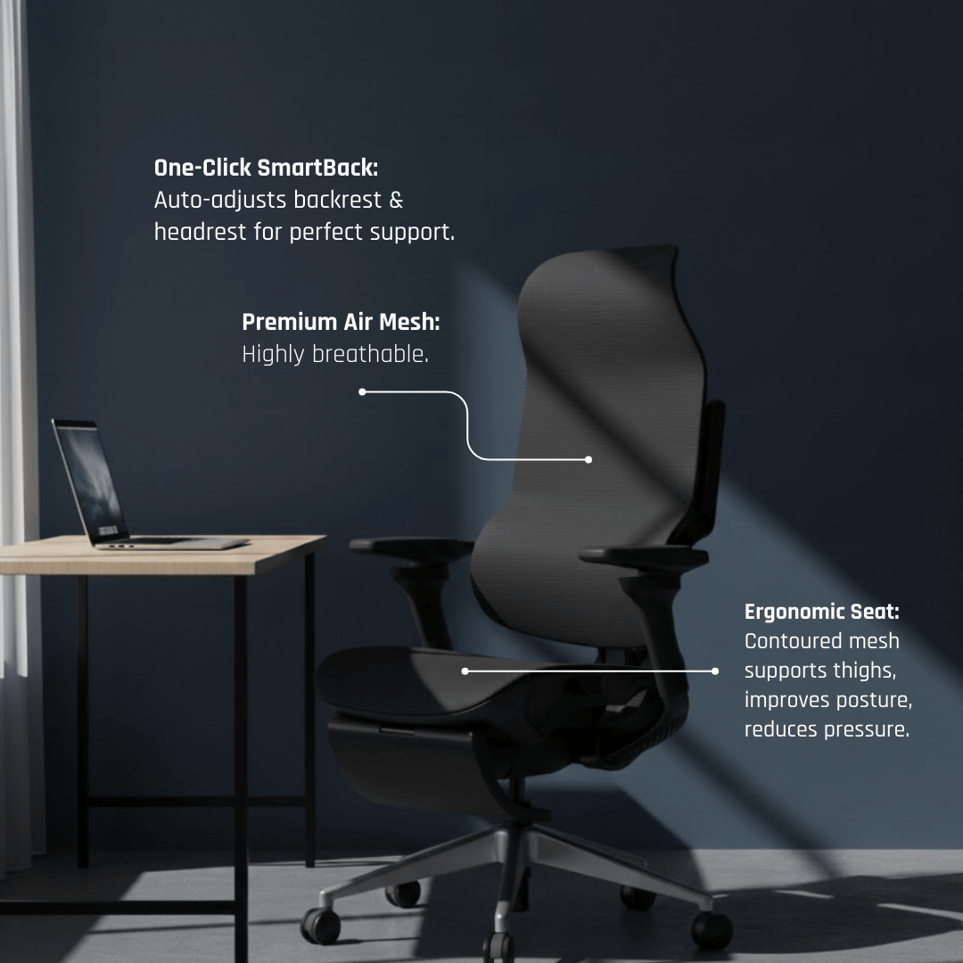 One-Click SmartBack: Auto-adjusts backrest & headrest for perfect support.