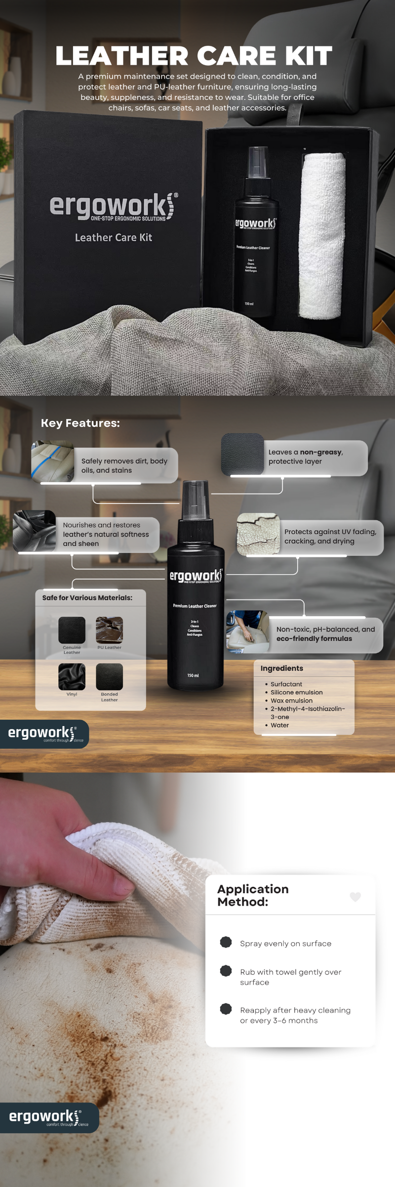 ![Leather Care Kit [150ml]](http://ergoworks.com.sg/cdn/shop/files/Leathercarekit_1_b2c8e6e6-aecc-4ddf-af32-15660d903d50.jpg?v=1761198739&width=1080)